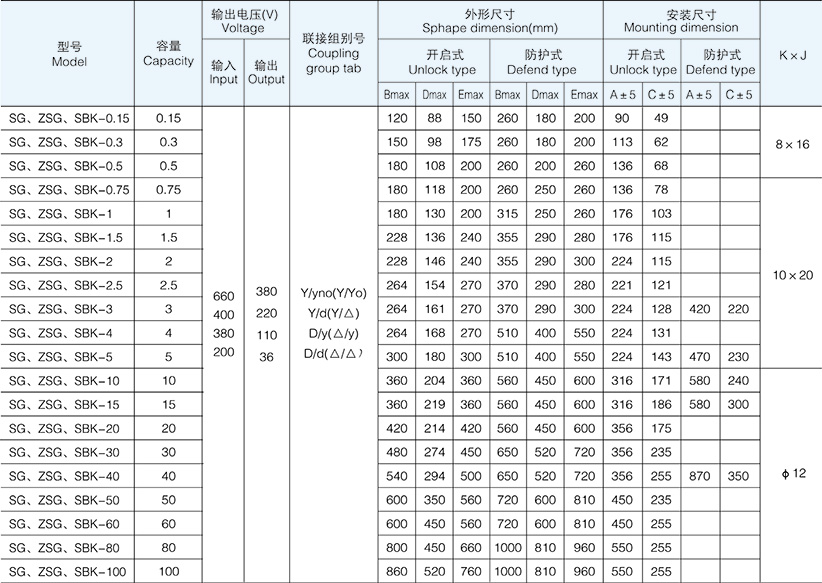 SG系列三相干式變壓器廣泛適用于交流50~60Hz,輸入、輸出電壓不超過(guò)500V的各種三相供電場(chǎng)合。產(chǎn)品的各種輸入、輸出的電壓高低、聯(lián)接組別、調(diào)節(jié)抽頭的多少及位置(一般為±5%)、繞組容量的分配、次級(jí)單相繞組的配備、整流電路的運(yùn)用、是否要求帶外殼等,均可根據(jù)用戶的要求進(jìn)行精心的設(shè)計(jì)與制造。